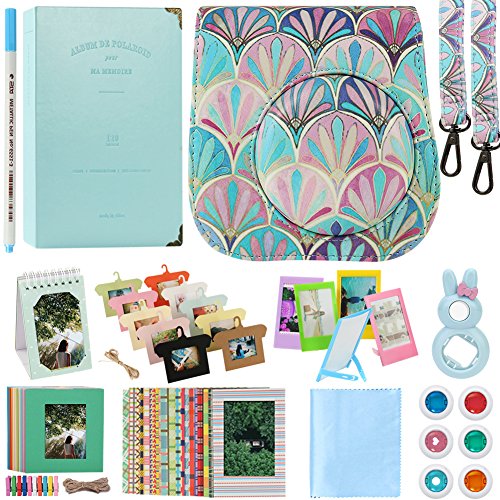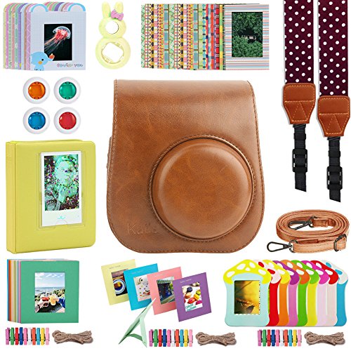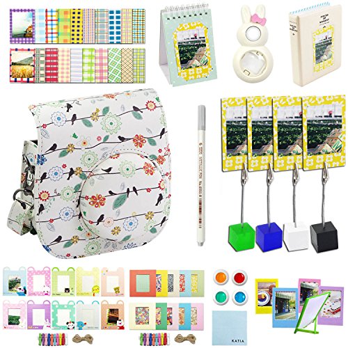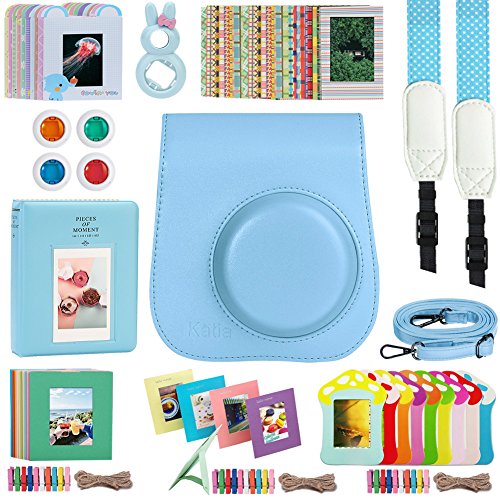 FITS POLAROID CAMERA - INSTANT CAMERA ACCESSORIES BUNDLES - The Katia bundles included instant camera case, 64 pockets Photo Album, 10 pockets tabletop photo album, close-up selfie lens, 4 colored filters, 2x3 inch Frames, wall hang frames, film stickers, pen, photo holder and cleaning cloth [Do Not Include a Instax Mini 8 Camera]
