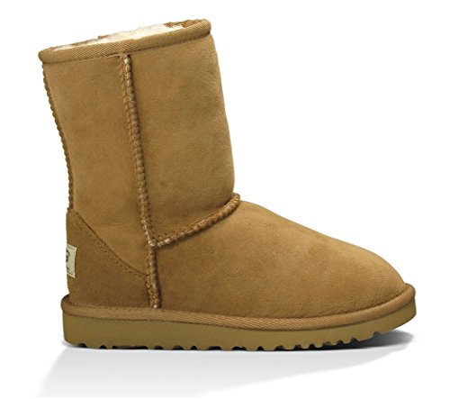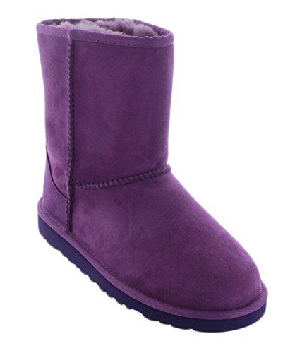 100% sheepskin fleece wicks moisture away, keeping feet dry and comfortable Naturally thermostatic, sheepskin maintains body temperature in warm or cold climates Classic outsole with lightweight EVA that is flexible and has solid traction .The boots are 8 inches tall from floor to the top. Women conversion Size 6 in Women's equals a 4 in kids so 2 sizes down from your women's size. These boots are not water proof and cannot be made water proof. Women conversion Size 6 in Women's equals a 4 in kids so 2 sizes down from your women's size.Feature