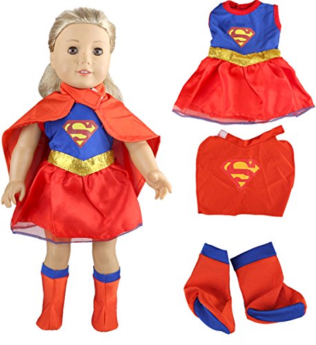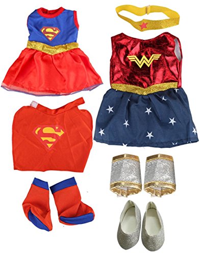 Doll Clothes Hero Costume Supergirl and Wonder Woman Outfits Fit 18 inch American Girl Dolls and Other 18" Dolls Alike