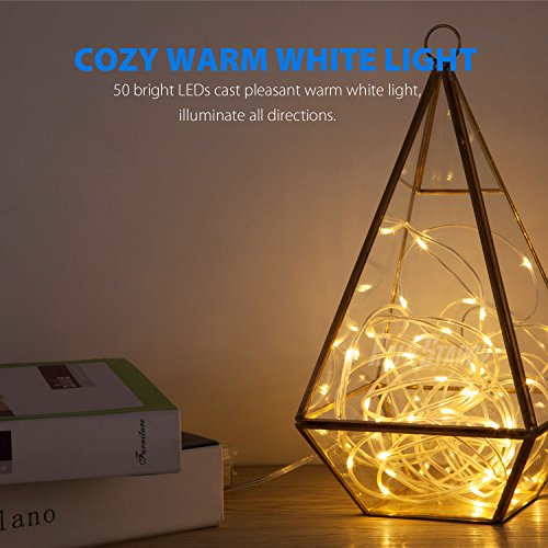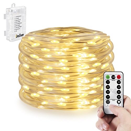 Outdoor Rope Lights ,Battery Operated 50 LED 16.4FT Waterproof String Lights 8 Modes Twinkling Fairy Lights with Remote Timer for Garden Patio Outdoor Decoration Christmas Rope Lights (Warm White)