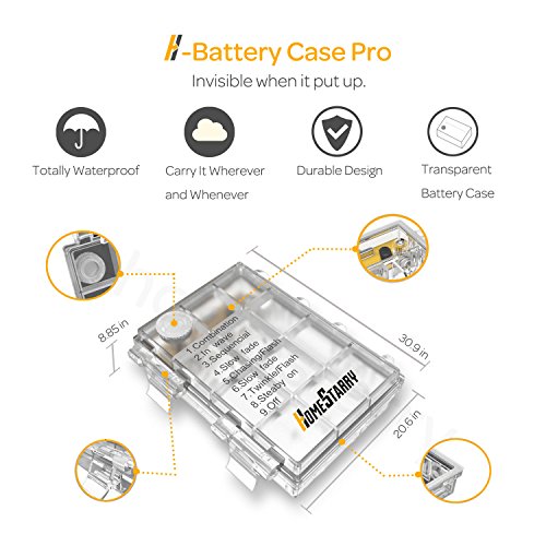 QUALITY BATTERY CASE: Made from high quality PVC materials, IP44 waterproof, works fine on rainy days. Got smart temperature to prevent overheat. The button on it can be used to switch the lights on/off and change light modes bypass the remote.