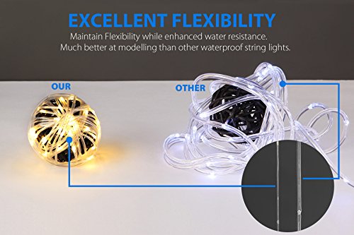 IP65 WATERPROOF: Clear soft plastic encases silver lights strands to provide excellent waterproof protection. Perfect for outdoor use. This design also prevents the lights strands from getting tangled.