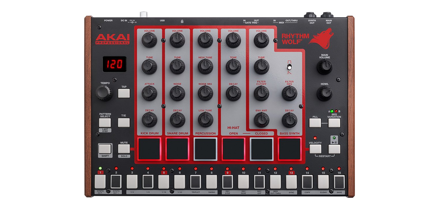 Rhythm Wolf is a 100% analog device that consolidates drum machine, base synthesizer, step sequencer into one compact body.