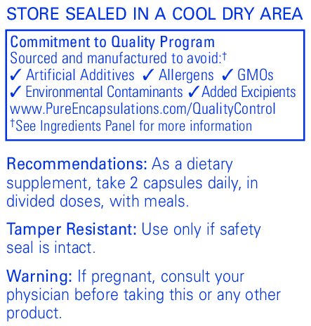 PURE INGREDIENTS: Pure Encapsulations® manufactures a line of hypoallergenic, research-based dietary supplements. Products are meticulously formulated using pure ingredients designed to deliver predictable results for the benefit of all patients, even the most sensitive.*