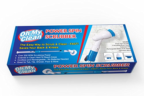 -. Feature : CLEANS BETTER THAN THE COMPETITION - Trusted by professional cleaners, our Power Spin Scrubber cleans better and lasts longer. New & improved design easily lifts away dirt and grime - even from hard-to-reach corners and crevices. / SCRUBS & CLEANS IN SECONDS - With over 300 RPM of scrubbing power and a powerful rechargeable battery, all your stubborn soap scum, mildew, grime, and hard water stains will be gone in no time. Just turn on and watch our scrubber go to work. / SAVE YOUR BACK AND KNEES - No elbow grease required. Your knees, shoulders, and back will thank you. Lightweight and powerful, our scrubber makes your job easy. Use the included long extension handle to clean tight and hard to reach places. A great Christmas gift idea for mom, wife, or anyone else who hates cleaning! / MULTI-PURPOSE CLEANING TOOL - Effortlessly cleans your bathroom, shower, tub, walls, floors, sinks, toilets, and more. With 3 interchangeable replacement brush heads and a waterproof design, you can clean any surface, indoor or outdoor - even in wet conditions. / 100% MONEY BACK GUARANTEE - If you are not absolutely thrilled with your Oh My Clean Power Spin Scrubber, return it for a full refund. No questions asked. We stand behind the quality and durability of our products and are confident you will LOVE your Power Spin Scrubber.