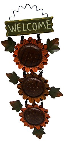 Craft Outlet Wooden Welcome Tin Sunflower Wall Hanging, 17-Inch