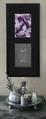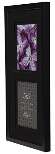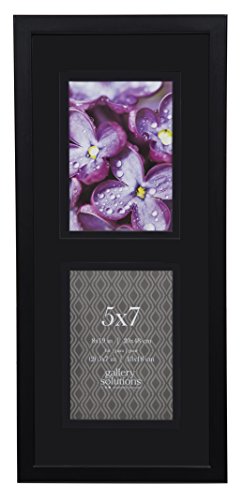 GALLERY SOLUTIONS 8x19 Black Wood Wall Frame with 2 Opening Double Black Mat For Two 5x7 Images