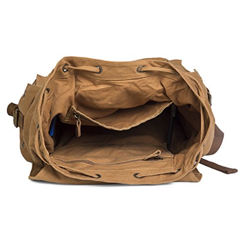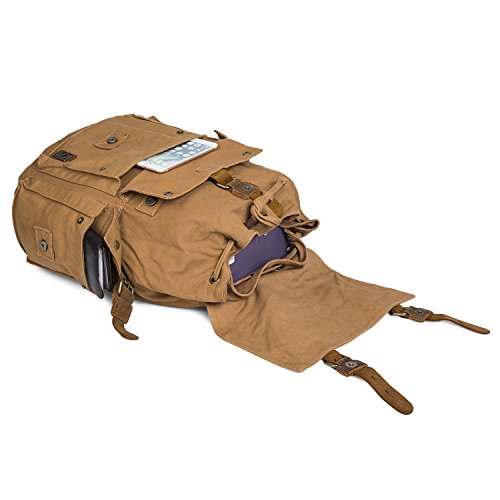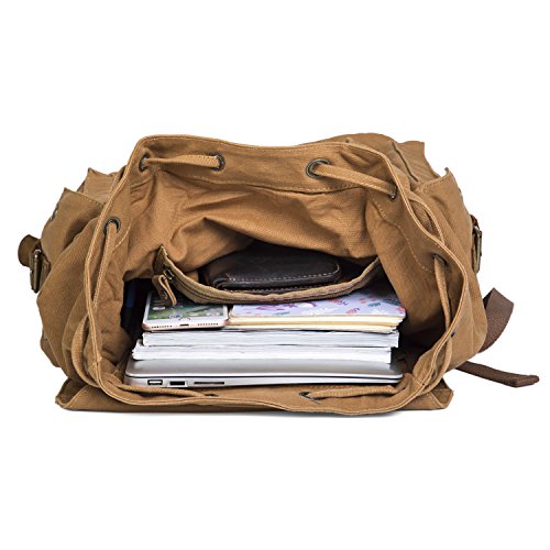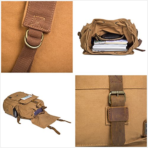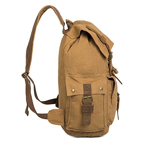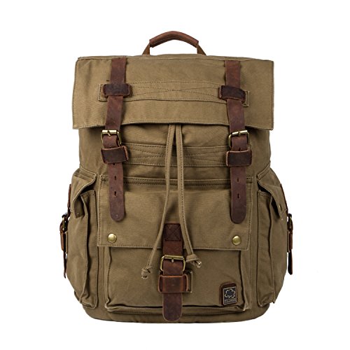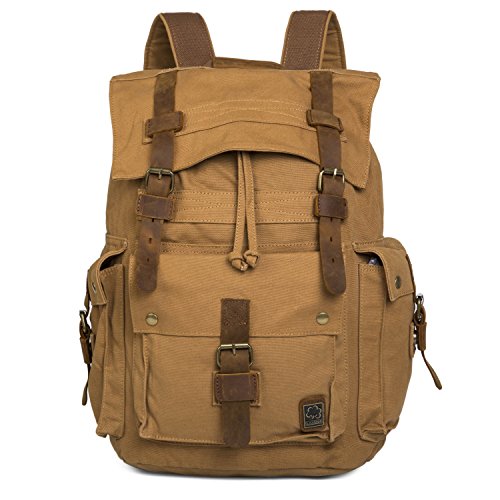 -. Title : UBORSE Vintage Canvas Backpack Leather Front Strap Hiking Travel School Daypacks Computers Laptop Backpacks Unisex Casual Rucksack Satchel Bookbag Mountaineering for Men Women
