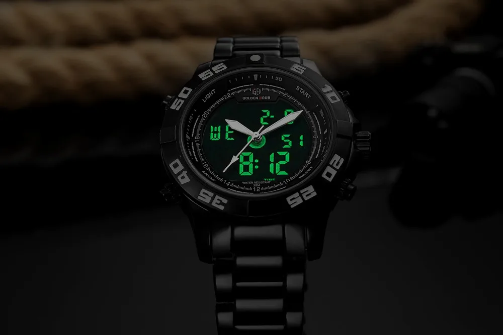 Feature:Auto Date,Complete Calendar,Shock Resistant,Luminous Hands,LED display