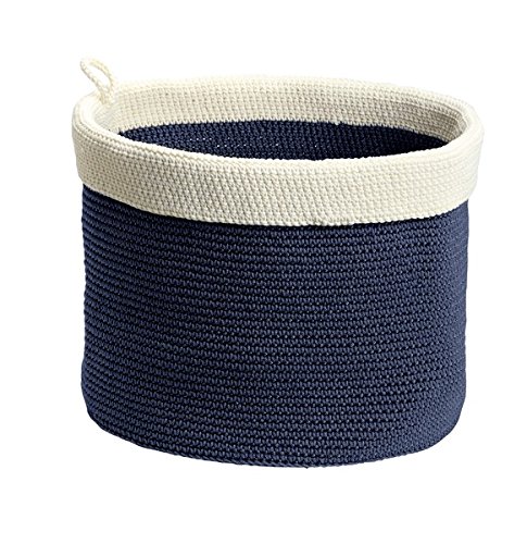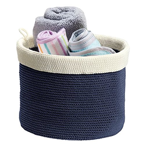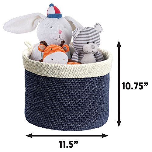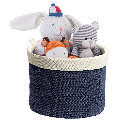 mDesign Knit Baby Nursery Closet Organizer Bin for Stuffed Animals, Toys, Blankets, Towels - Large, Navy/Ivory