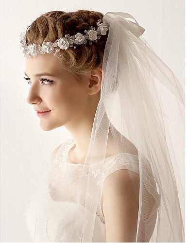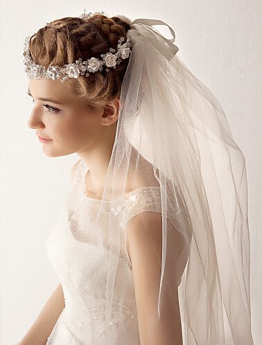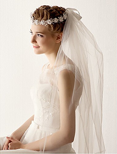 Venus Bridal Wedding Veil with Lace Edge and Comb Attached (ivory)