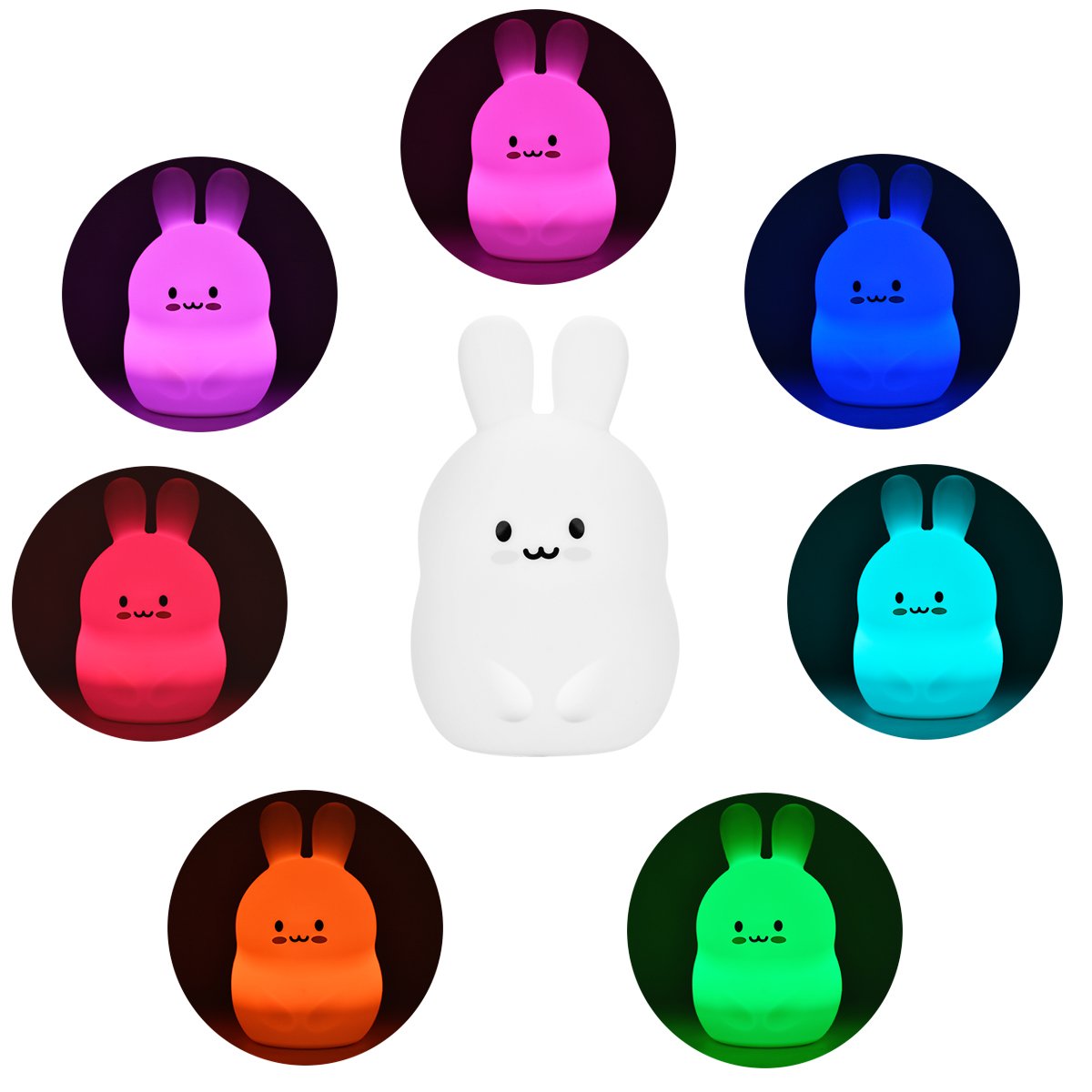 There are five stages of lighting modes: "low brightness mode", "high brightness mode", "gradation mode", "fluctuation mode", which can be easily switched by hitting a rabbit.