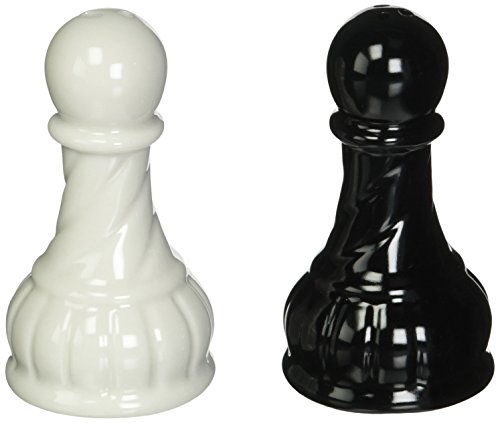 CG SS-CG-56902 Black & White Ceramic Chess Pawn Salt & Pepper Shakers, 3.625"