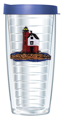 Lighthouse Round Island MI Emblem 16 Oz Traveler Tumbler Mug with Lid
