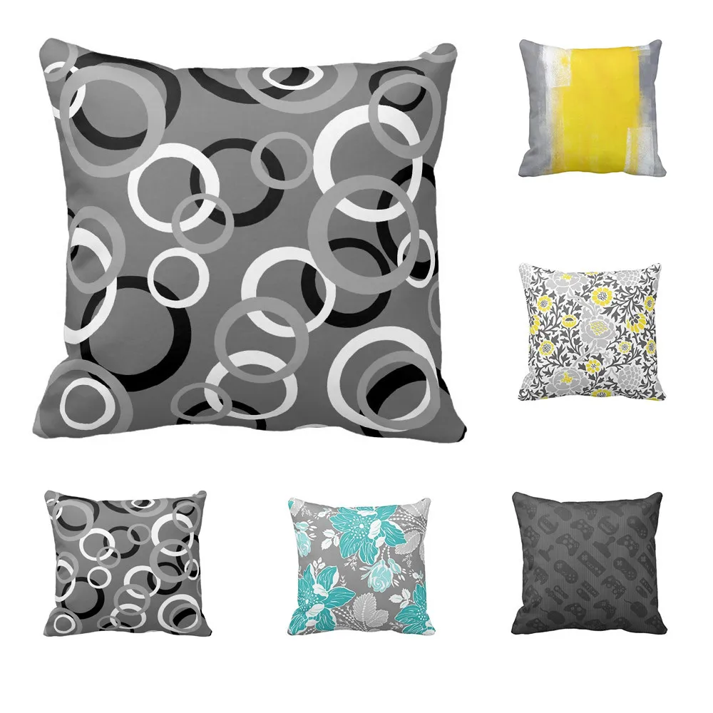 Cotton Linen Sofa Cushion Pillow Cases Cover Geometric Home Decor gradual change pattern Circle Girls Cotton Linen Almofadas
