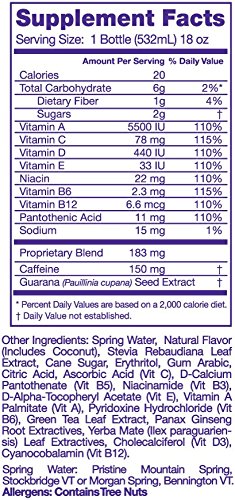 • Green tea extract contains powerful antioxidant properties, while natural caffeine and yerba mate deliver an exhilarating, yet natural energy lift which promotes mental clarity and focus