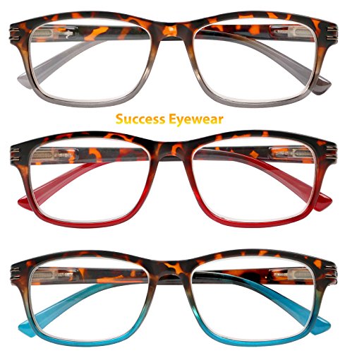 Product Description Success Eyewear bring you this set of stylish reading glasses. Set includes three pairs. The refreshing colors are suited for both men and women of all ages. These glasses allow you to keep them in your favorite reading spots so you always have them on hand when needed. 0