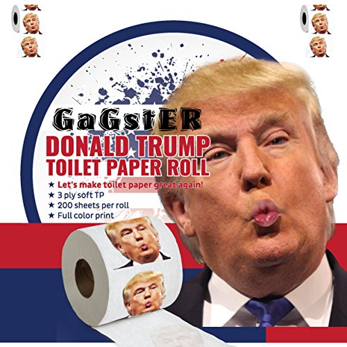 The Most Hilarious Take A Dump With Trump Toilet Paper Rolls - The funniest political gift TP now in full color! Are you a huge fan of Donald Trump? Do you detest the guy and want to watch his face stuck in the bottom of your bathroom toilet basket? No matter what your beliefs are, we may assure you that our hilarious toilet rolls will make everyone smile, whether they are Trump's lovers or haters! Witty Gag Gift Ideal For All People Out There Do you love Donald Trump? Get a roll! Do you hate Donald Trump? Get a roll! Our novelty toilet paper features one of Trump's puckered lips facial expressions, in all its glory, on every single sheet. Easy to be used, simply place a roll on the toilet paper dispenser and off you go! It will fit perfectly on any type of roll holder you might have. Democrats Vs Republicans Toilet Paper Rolls Let the war between the democrat and republican parties begin while you are holding this printed toilet paper as a white flag! Spice things up at the forthcoming BBQ gatherings, picnics with friends and family occasions. All of your 3 ply toilet rolls are brand new and individually packaged. No worries there! What are you waiting for? Get yours today! 0 |