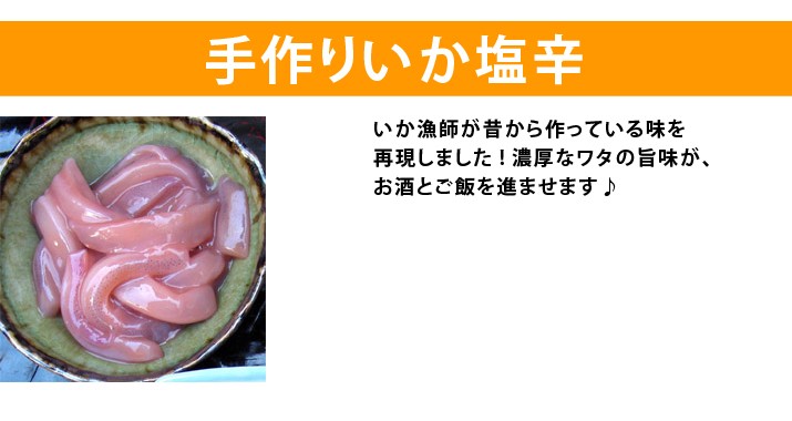 【商品内容】手作りいか塩辛500g(化粧箱入り)【賞味期限】商品に記載  解凍後は20日間【保存方法】冷凍庫で保存してください。 解凍後はお早めにお召し上がりください。【お届け方法】冷凍便でお届けします。【同梱について】「常温商品」との同梱はできません。