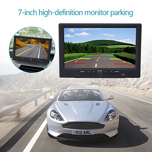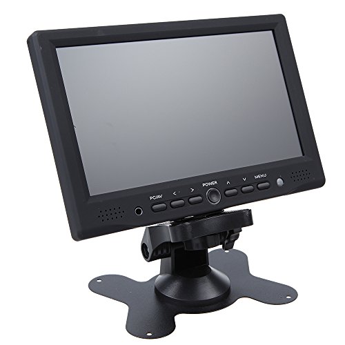 - Feature : 7″LED Backlight Color TFT LCD monitor, the larger screen gives you a better view of the road / With 2 AV input: AV1 connects to car DVD, VCR and other video equipment; AV2 to car backup camera / Full color LED backlight display. High-resolution picture. No Audio input or output / Screen rotatable. Screen ratio 16:9/4:3 adjustable. Brightness, contrast, color adjustable / Comes with an IR remote controller,easy to operate