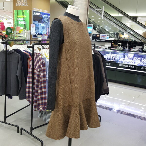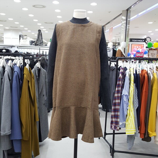 귀엽고 발랄한 밑단프릴장식에 넉넉한H라인 원피스입니다 투박하지 않고 따뜻한 느낌을 주는 폴리소재가 편안한 착용감을 드리며 모든 이너와 코디하기 좋은 아이템입니다