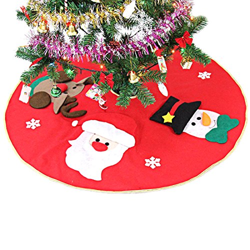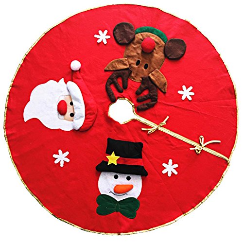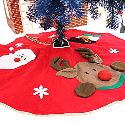 Slocyclub Red Embroidered Christmas Tree Skirt Xmas Tree Ornaments Party Decoration 39 Inch Diameter With Santa Claus Snowman Reindeer Semi-stereoscopic