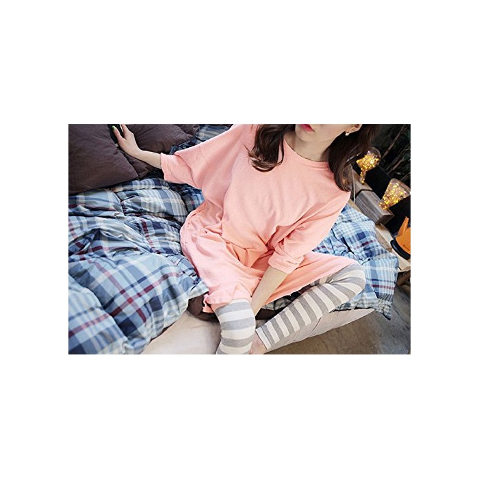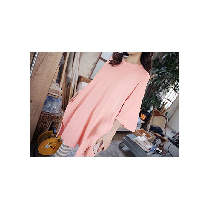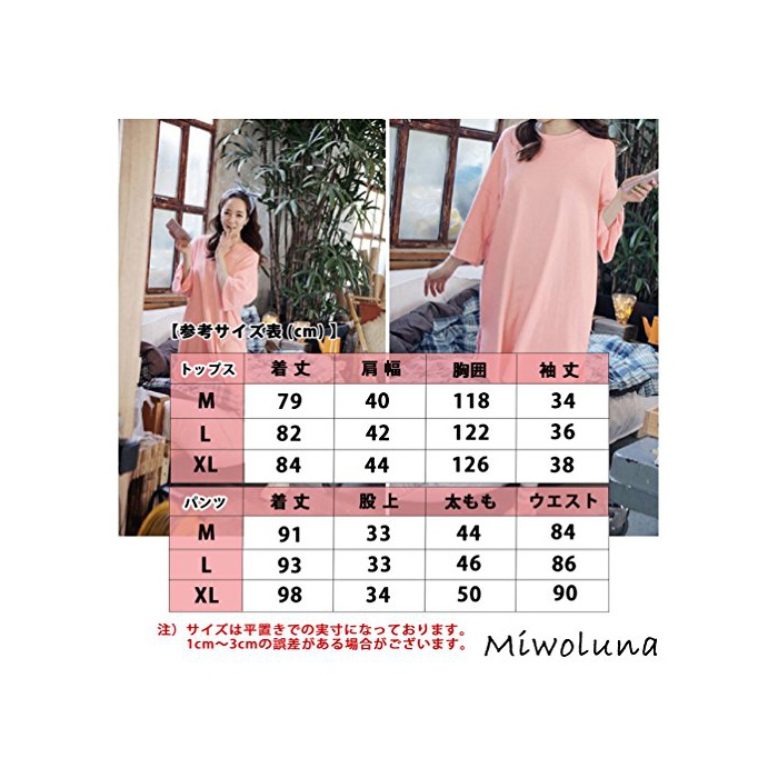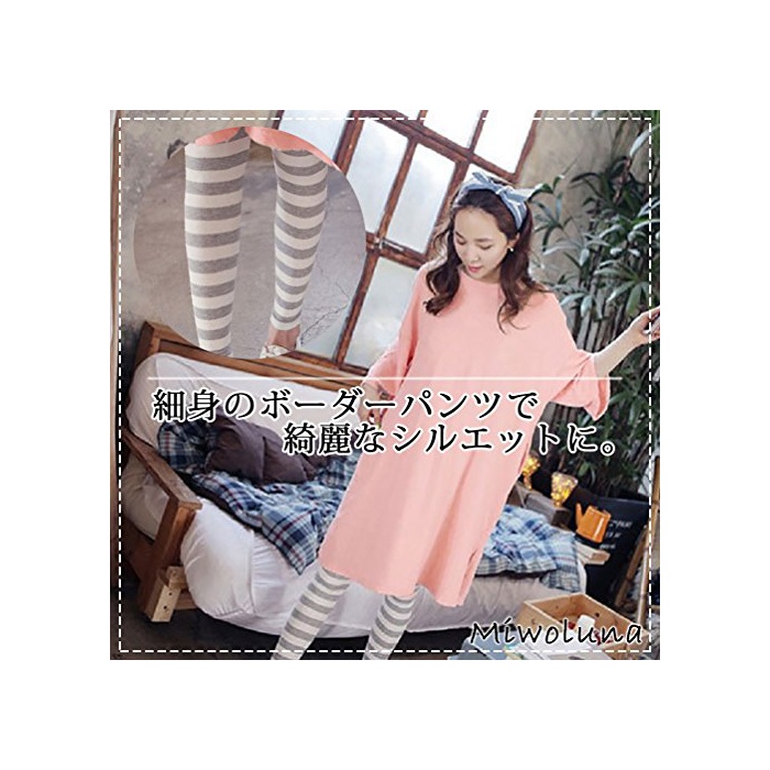 (Miwoluna) 마타니티 수유복 파자마 집착 넉넉하게 사이즈 나와 악? 반소매 핑크 보더 팬츠 M