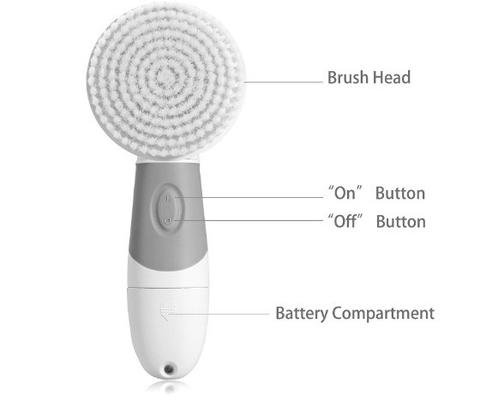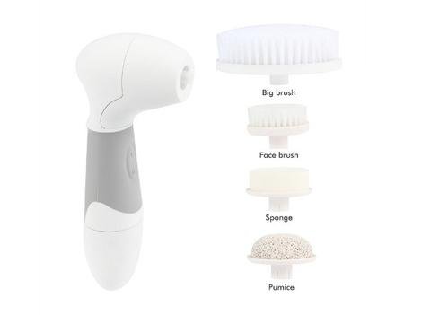 It operates with 4 interchangeable attachments: big brush, small brush, pumice and face sponge.It operates with 4 exchangeable attachments: big brush, small brush, pumice and face sponge.