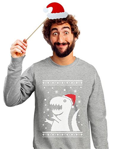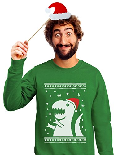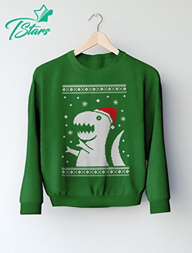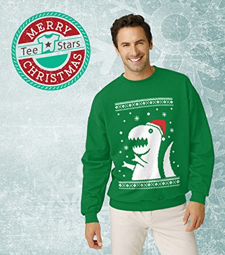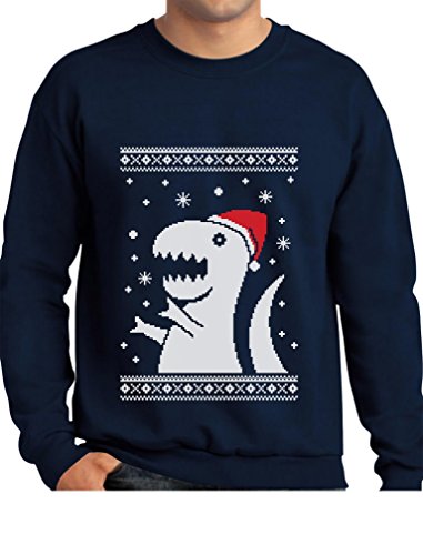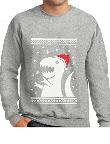 Binding : Apparel Product Description T-Rex with Santa's hat funny ugly Christmas sweatshirt. This is a fun sweater for the holidays. Super comfy and soft inside. Great for an ugly sweater party. Great Xmas gift idea. Premium quality sweatshirt. 50% cotton/50% polyester, 8 oz thick fabric weight, classic fit, crew neckline, ribbed sleeve cuffs and bottom hem. Machine washable. Guaranteed to keep you warm and comfortable this winter! it is sure to be a hit, whether you're buying it as a gift for somebody special or wearing it yourself. Available in a wide variety of sizes and colors - choose the size and color options from the drop-down list. 0