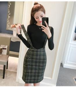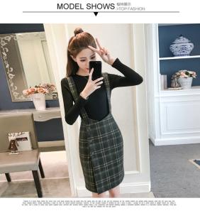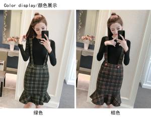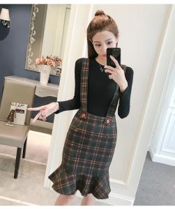 タイトスカート マーメイドスカート タイトトップス サスペンダー付き チェック柄 フリル ツーピース