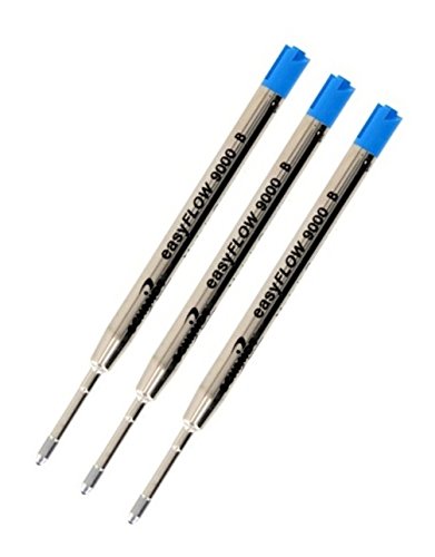 3 Pack - Schmidt Easy Flow 9000 Ballpoint Pen Refills - Blue Broad / Bold Point