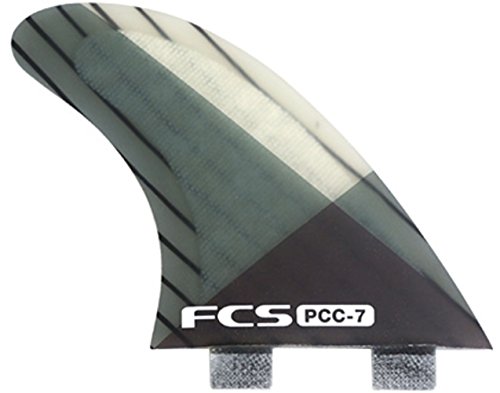 Studio : Fcs Publisher : Fcs Binding : Misc. Product Description FCS PCC-7 Tri Fin set. Tri fin set designed for thruster surfboards. Fin setup: Thruster. Fin size: Large. Fin system: FCS. Ultra responsive lightweight fin construction for critical surfing. The neutral all-round templates feature Inside Foil Technology (IFT) and are designed to provide a balance of drive speed and flow in a variety of conditions and board types. Dynamic RTM construction with strategically placed carbon compliments the template and sweep angle of the fin and produce a bespoke flex pattern with remarkable memory properties. In the water this translates to immediate response when loading up the fins and driving through turns. Imported. Vendor style #: PCC713700R. Fin Specs: Base: 4.52 inches / 115.0mm Depth: 4.67 inches / 119.0mm Area: 15.71 inches#178; / 10137mm#178; Sweep: 33#176; Foil: IFT 0
