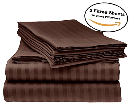 Deluxe 2Pk Fitted Bed Sheets - Bottom Sheet, Soft 1800 Bedding, Highest Quality Brushed Microfiber, Hypoallergenic, Wrinkle, Fade, Stain Resistant - Bonus Free pillowcase - (Twin Size Chocolate)