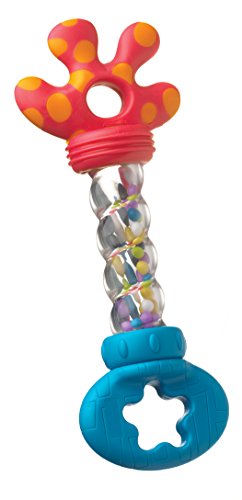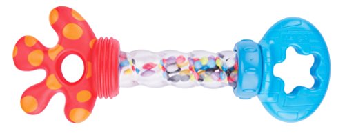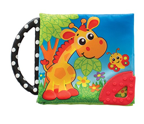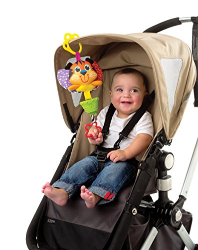 Featuring 5 Infant developmental toys, this fun musical baby toy gift pack is designed to entertain any groovy baby. The Musical Pullstring Tiger plays a gentle, groovy song while the rattle wand makes music when you shake, shake, shake! The interactive story book has plenty of features for baby to explore and use their imagination, including crinkle features, a squeaker and a chewy teether will keep any baby entertained on the go. Teething babies will love the textures of the twisting rattle and the high chair toy as they soothe their sore gums during play.Feature