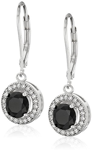 -. Feature : Sterling silver drop earrings featuring synthetic round centerpiece encircled by halo of pave-set created cubic zirconia / Lever-back findings / Imported