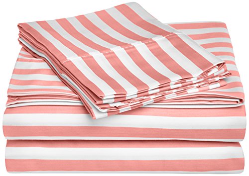 - Title : Impressions by Luxor Treasures® Cabana Stripe Kids Wrinkle Resistant Cotton Blend 600 Thread Count Queen 4-Piece Sheet Set, Pink