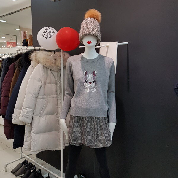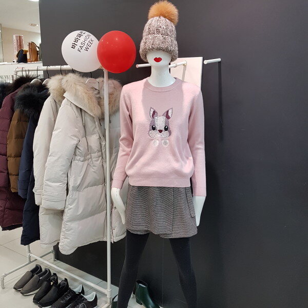 구여운 토끼문양의 니트티셔예요 모든옷에 연출하기좋아요~~^^