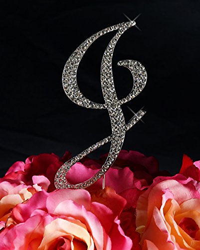 Unik Occasions Sparkling Collection Crystal Rhinestone Monogram Cake Topper - Letter J, Small, Silver