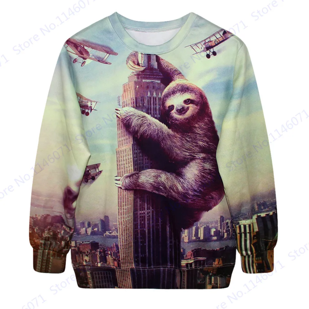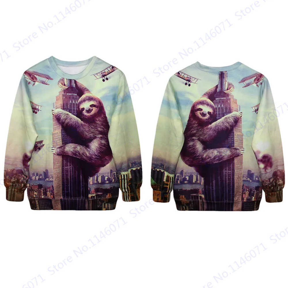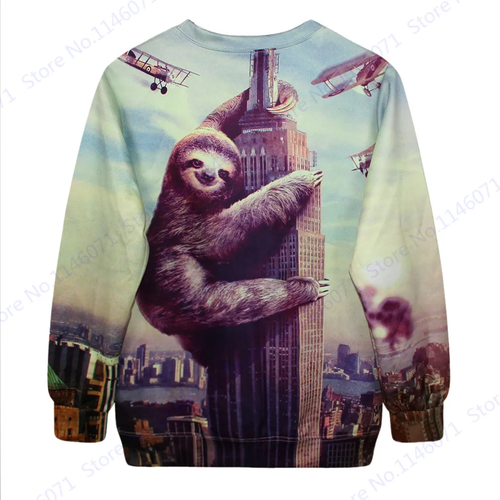 Features 1:London Big Ben Adorkable Sloth Print Sweatshirt Autumn Active Pullover