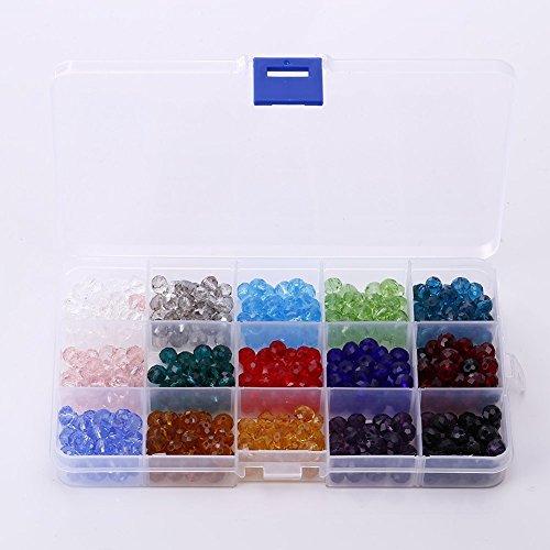 Bingcute Wholesale 6mm Crystal Faceted #5040 Briollete Rondelle Crystal Glass Beads for Jewelry Making Findings Include Plastic Container Box (750pcs) (6MM)