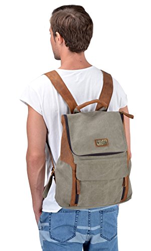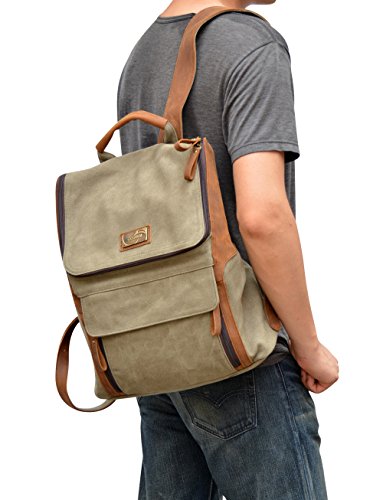 Title : Gootium 21109AMG Leisure Canvas Full Grain Leather Backpack, Army Green