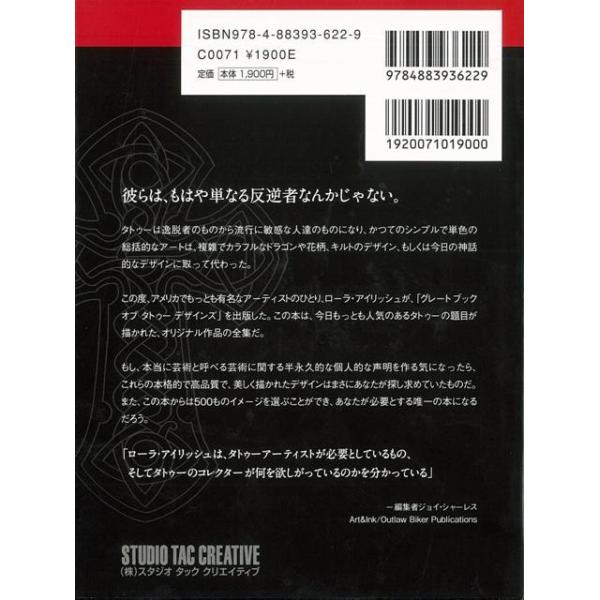【商品基本情報】 商品名称:グレートブックオブタトゥーデザインズ 著者/出版社:Lora S.Irish/Lora S.Irish 初版発行日:2013/09/10 サイズ:B6変判 ページ数:403 ISBN/JAN:9784883936229/4528189484603