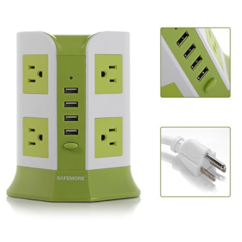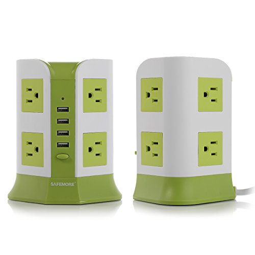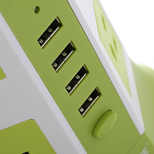 Safemore Power Strip 8-AC Outlets and 4-Port USB Charging Ports with 6.5-Foot Cord(Green+White)