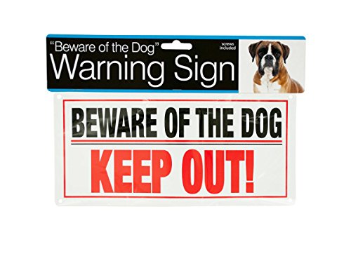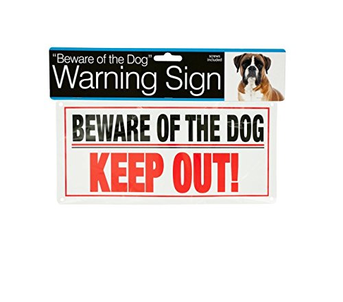 Studio : Unique Cell Distributors LLC Publisher : Unique Cell Distributors LLC Binding : Misc. Product Description Warn trespassers and keep them safe with this bold Dog Warning Sign featuring a white plastic sign printed with the words "BEWARE OF THE DOG" in black and "KEEP OUT!" in red. Screws included. Measures approximately 10" x 4.75". Comes packaged in a poly bag with a header card. 0