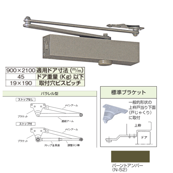 ●仕様:パラレル型・ストップ付(ストップ角度70~180°)・ドア重量45kgまで