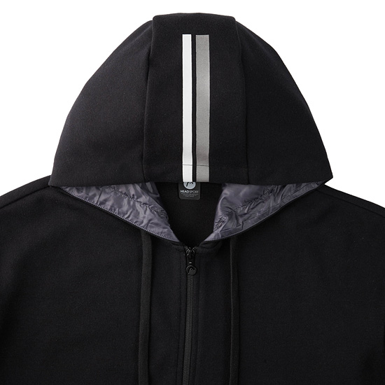 - 후드 이면 폴리 소재를 적용하고 컬러 라인 배색으로 디테일 포인트.