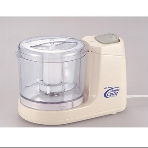 전동 후드 쵸파(chopper)(식품 가공기《―》) 스위치 온에 간단 채 썲 전원:AC100V/50-60Hz 정격시간:3 분정격소비전력:60W 최대 조리량:150g(타마 파) 회전수:1600회전/분(무부하 시) 중량:약760g 코드의 길이:약1.2M크기:약폭11cm(길이)깊이18cm높이12.5cm