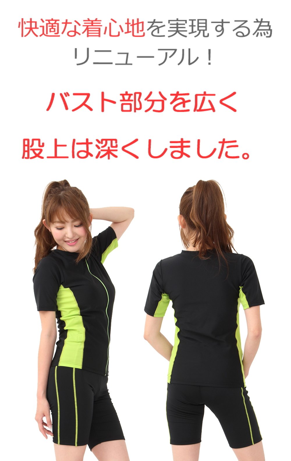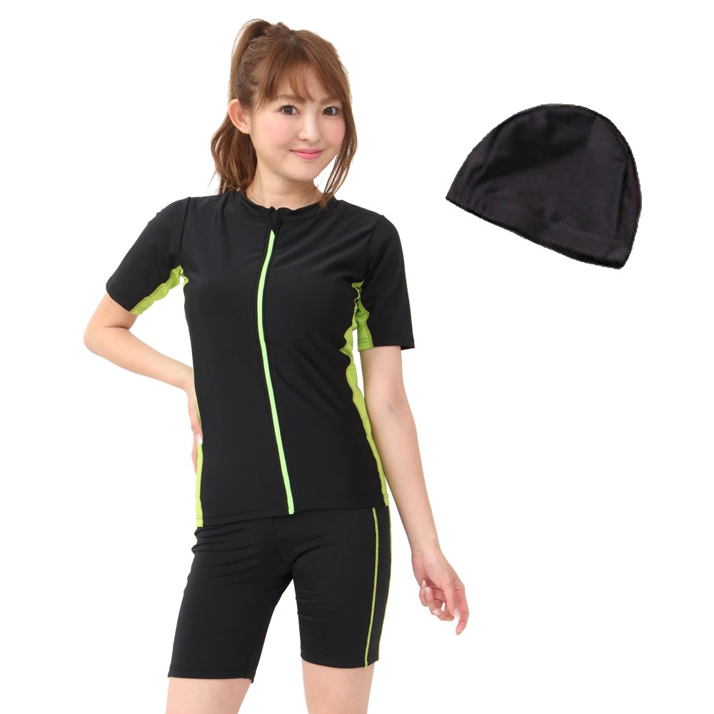 Turn off prevention · With cap · Short sleeve fitness swimwear 【Switched under sleeve】