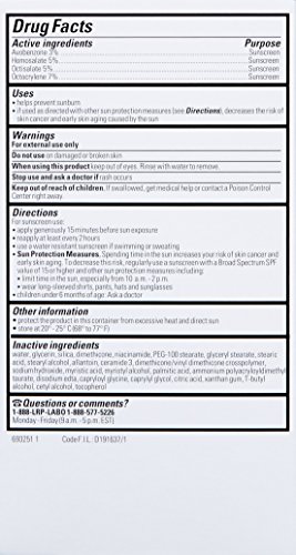 Use as an oil free moisturizer that won’t clog pores. Active ingredients: Avobenzone 3% (sunscreen) / Homosalate 5% (sunscreen) / Octisalate 5% (sunscreen) / Octocrylene 7% (sunscreen). Inactive ingredients: water (La Roche-Posay Prebiotic Thermal Water) / glycerin / silica / dimethicone / niacinamide / PEG-100 stearate / glyceryl stearate / stearic acid / stearyl alcohol / allantoin / ceramide NP / dimethicone/vinyl dimethicone crosspolymer / sodium hydroxide / myristic acid / myristyl alcohol / palmitic acid / ammonium polyacryloyldimethyl taurate / disodium edta / capryloyl glycine / caprylyl glycol / citric acid / xanthan gum / T-butyl alcohol / cetyl alcohol / tocopherol.