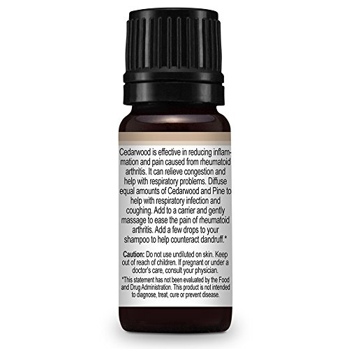 Details: Botanical Name: Cedrus deodora Origin: India Extraction Method: Steam Distilled Plant Part: Wood Strength of Aroma: Strong Aromatic Scent: Cedarwood has a dry woody aroma, slightly smoky, balsamic, and very subtle with a hint of spice. Blends Well With: Bergamot, Clary Sage, Cypress, Frankincense, Jasmine, Juniper Berry, Neroli, Pine, Rosemary, Vetiver and Ylang Ylang. Suggested Use: Cedarwood essential oil is effective in reducing inflammation and pain caused from rheumatoid arthritis. It can relieve congestion and help with respiratory problems. Diffuse equal amounts of Cedarwood and Pine to help with respiratory infection and to suppress coughing. Add to your favorite carrier and gently massage to ease the pain of rheumatoid arthritis. Add a few drops to your shampoo to help counteract dandruff. Cautions: None known. Please Note: The International Federation of Aromatherapists does not recommend that Essential Oils be taken internally unless under the supervision of a Medical Doctor who is also qualified in clinical Aromatherapy.
